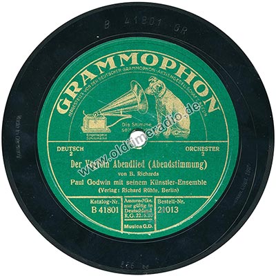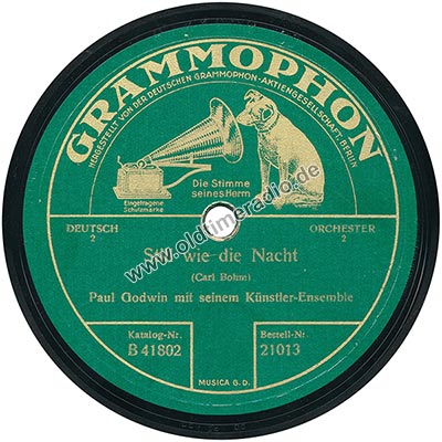 Weitere Bemerkungen auf Etikett (außer Titel): Die Stimme seines Herrn, eingetragene Schutzmarke, DEUTSCH, ORCHESTER, 2m, Nur gültig in Deutschland R.G. 22.5.10. Musica G.D.
