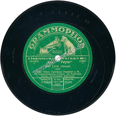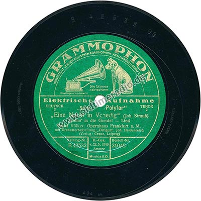 Weitere Bemerkungen auf Etikett (außer Titel): Die Stimme seines Herrn, eingetragene Schutzmarke, Deutsch, Tenor, 2, R.-Ges. v. 22.5.1910, Ammre, Musica G.D.