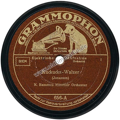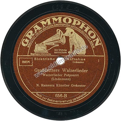 Weitere Bemerkungen auf Etikett (außer Titel): Die Stimme seines Herrn, eingetragene Schutzmarke, Elektrische Aufnahme, Orchester, Recht zur Radioverbreitung vorbehalten
