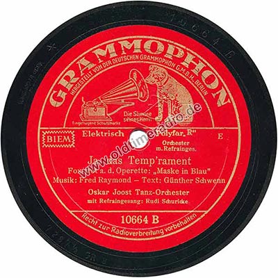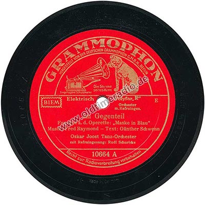 Weitere Bemerkungen auf Etikett (außer Titel): Die Stimme seines Herrn, eingetragene Schutzmarke, Orchester m. Refrainges., E, Recht zur Radioverbreitung vorbehalten