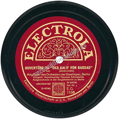 Weitere Bemerkungen auf Etikett (außer Titel): ORCHESTER, ELECTROLA KONTROLLE URHEBERRECHT ABT.