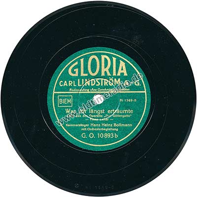 Bemerkungen zu Erscheinungsjahr: Gloria wurde 1932 als billige Platte zum Ersatz der eingestellten Derby Serie eingeführt.