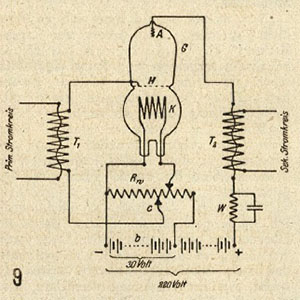 13.02.1912 S. Strauss meldet ein Patent zum Rückkopplungsprinzip an. Mit dem Rückkopplungsprinzip wird der Einsatz von Röhrensendern zur Hochfrequenz-Erzeugung möglich (Telefonverstärker, Rundfunksender). In den Jahren 1912/13 werden Rückkopplungsschaltungen weitgehend unabhängig voneinander auch von Lee De Forest, E. Reisz, C. S. Franklin, A. Meissner, H. J. Round, E. H. Amstrong und I. Langmuir entwickelt.