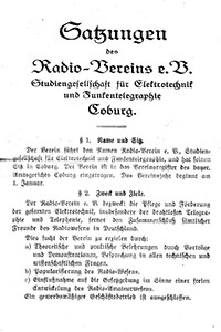 15.11.1919 In Coburg wurde der erste Radioverein Deutschlands gegründet. Er wurde unter der Nr. 92 unter den ersten hundert Vereinen am 25.05.1923 beim Amtsgericht Coburg eingetragen.