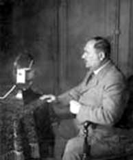 Hans Bredow vor Reisz-Mikrofon,