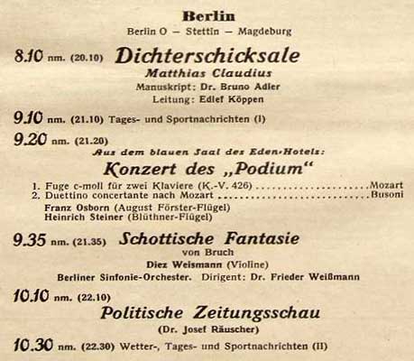 Das erste deutsche Rundfunk-Programm     Quelle: unbekannt