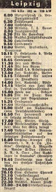 Das Programm des "Reichssenders Leipzig" vom 28.2.1936: