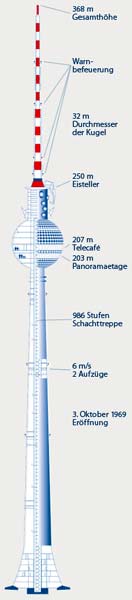 Der Berliner Fernsehturm war mit 365 Metern das höchste Bauwerk Deutschlands und das vierthöchste, nicht abgespannte, Bauwerk Europas.