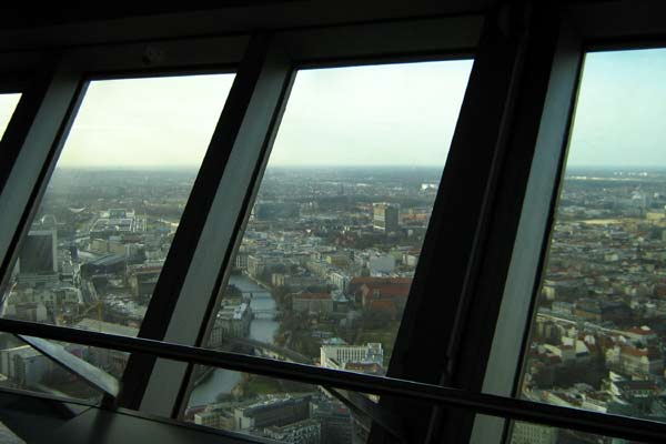 Hochauflösendes 360°-Panorama von der Aussichtsetage des Berliner Fernsehturms. Aufgenommen am 15. März 2007