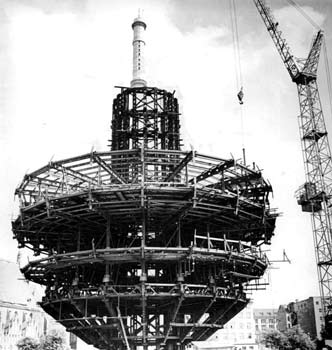 Am 4. August 1965 war Baubeginn. Die Antenne wurde aus einzelnen, etwa vier Meter großen, Segmenten zusammengesetzt.
