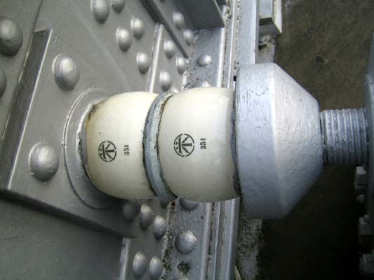 Die Isolatoren wurden von der Königlich-Preußischen Porzellanmanufaktur (KPM) gefertigt.