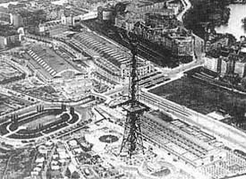 Am 19.08.1935, während der Funkausstellung brannte das hölzerne "Haus der deutschen Funkindustrie" ab und beschädigte auch den Funkturm mit den Sendeanlagen und dem Turmrestaurant schwer. Auch der erste "Paul-Nipkow-Sender" fiel diesem Brand zum Opfer.