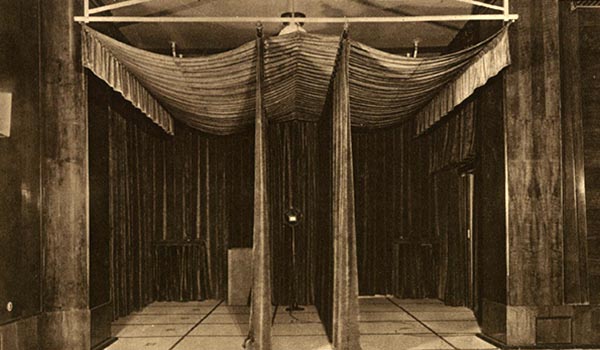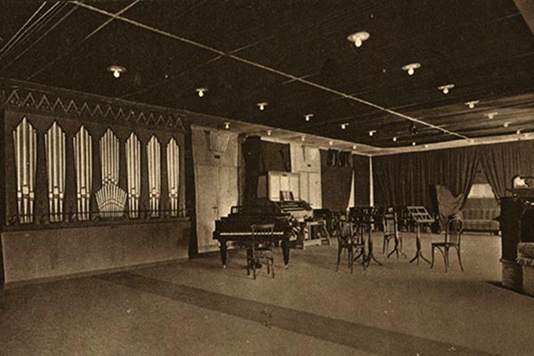 Der große Aufnahmeraum der Funkstunde mit Orgel um 1929