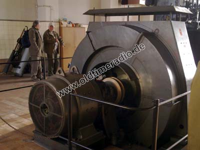 • 1 Drei- maschinen-Aggregat, das durch je einen Generator, 240 V, 30 A Gleichstrom für die Erregung der Umformer und die Hilfsstromkreise, sowie 2.200 V, 3 A Gleichstrom für die Anodenstromversorgung der Senderstufen 1 bis 4 und den Endverstärker lieferte