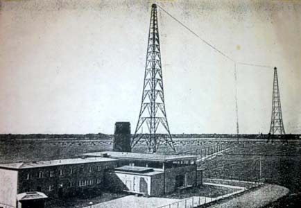 Im September 1931 begann der Bau des Sendehauses und von zwei Antennenmasten aus amerikanischen Pitchpinienholz.