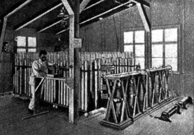 Batterie aus 360 Leidener Flaschen und Transformatoren für die Knallfunken-Sendeanlage 1906-1909