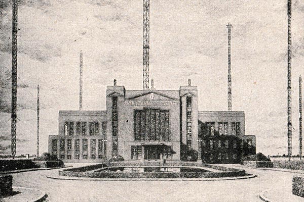 Vor 1937 sah der Hauptsendesaal folgendermaßen aus: Dort stand der Langwellensender mit einem Energieaufwand von 400 kW. Im Vordergrund der Maschinensatz.