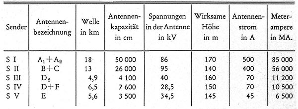 Er trug eine Schirmantenne deren, nach den Boden abgespannte, Drahtenden auf einen Kreis von 400 m Durchmesser lagen :