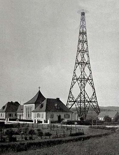 Sendemast und Sendegebäude 1937