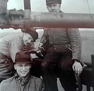 Das Foto, zwischen 1937 und 1945 auf der Spitze des Sendemastes