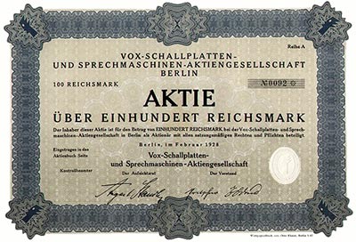 1928 hatte "Vox" bereits schwer mit der Weltwirtschaftskrise zu kämpfen. Trotzdem versuchte man eine Rettung mit dem Verkauf neuer Aktien.