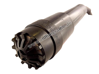 Wasserdichtes dynamisches Handmikrofon, niederohmig, kugelförmige Richtcharakteristik, 100 - 12.000 Hz, mit Schalter für nachfolgenden Verstärker, 5-poliges Anschlusskabel (ohne Stecker, die Konfektionierung erfolgte durch den Kunden). Speziell entwickelt für die Schifffahrt (Sprachübertragung). Selbst kurzzeitige Überflutung mit Salzwasser hat die Funktion dieses Mikrofones nicht beeinträchtigt. Das Anschlusskabel hat eine Länge von 8 m, kann jedoch bedenkenlos auf über 100 m verlängert werden. Die Impedanz liegt bei 100 Ω, der Nennabschluss bei 1 kΩ.