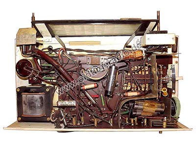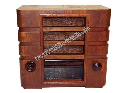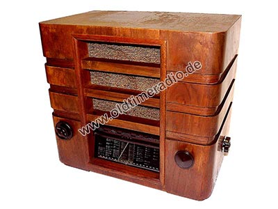 Mit genau geeichter Großflächenskala für alle Wellenbereiche, Sperrkreis, Tonblende, Lichtantenne, Entbrummer und Einrichtung zur Schallplattenübertragung. Neuartige Pentodenröhren. Die Stationsnamen auf der Skala sind farbig gekennzeichnet: Langwelle grün, Mittelwelle weiß, Kurzwelle rot.