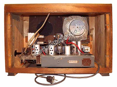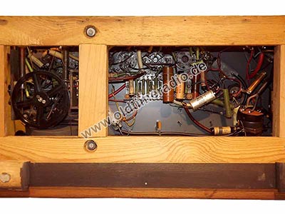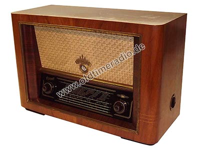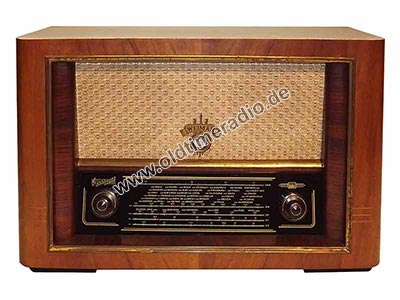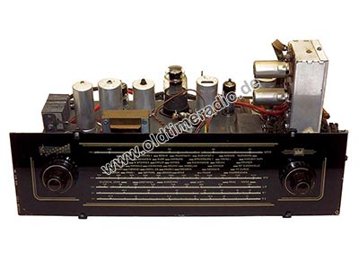 Erstes Gerät der "Weimar"-Serie. Permeabilitätsabstimmung für alle Bereiche, UKW-Gehäusedipol. Das Loch in der Schallwand ist aus akustischen Gründen beabsichtigt und weist daher nicht auf einen fehlenden Lautsprecher hin. Chassis-Nr. 03438.