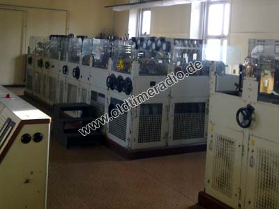 • 1 Drei- maschinen-Aggregat, das durch je einen Generator, 240 V, 30 A Gleichstrom für die Erregung der Umformer und die Hilfsstromkreise, sowie 2.200 V, 3 A Gleichstrom für die Anodenstromversorgung der Senderstufen 1 bis 4 und den Endverstärker lieferte