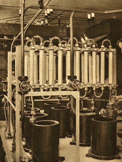 • Auch die Rückkühlanlage war mit 100% Reserve ausgerüstet. Die Anlage war zweikreisig. Das destillierte Wasser, welches mit den Anoden der Wasserkühlröhren in Berührung kam, durchlief über eine Pumpe einen geschlossenen Kreislauf.